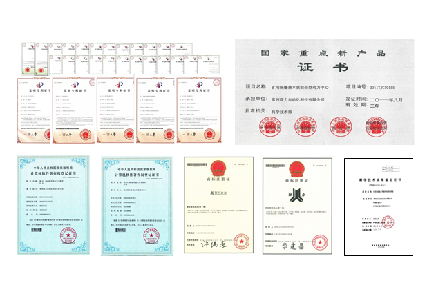 目前公司研发、生产的产品均为自主开发,具有自主知识产权,各类矿用产品301款,通过国家指定检测机构的检验,取得“安标证书”、“防爆合格证书”共210份;获得国家版权局授予“计算机软件著作权登记证书”18份, 取得国家知识产权局授予专利权58项,其中实用新型专利33项、发明专利22项、外观设计专利3项。