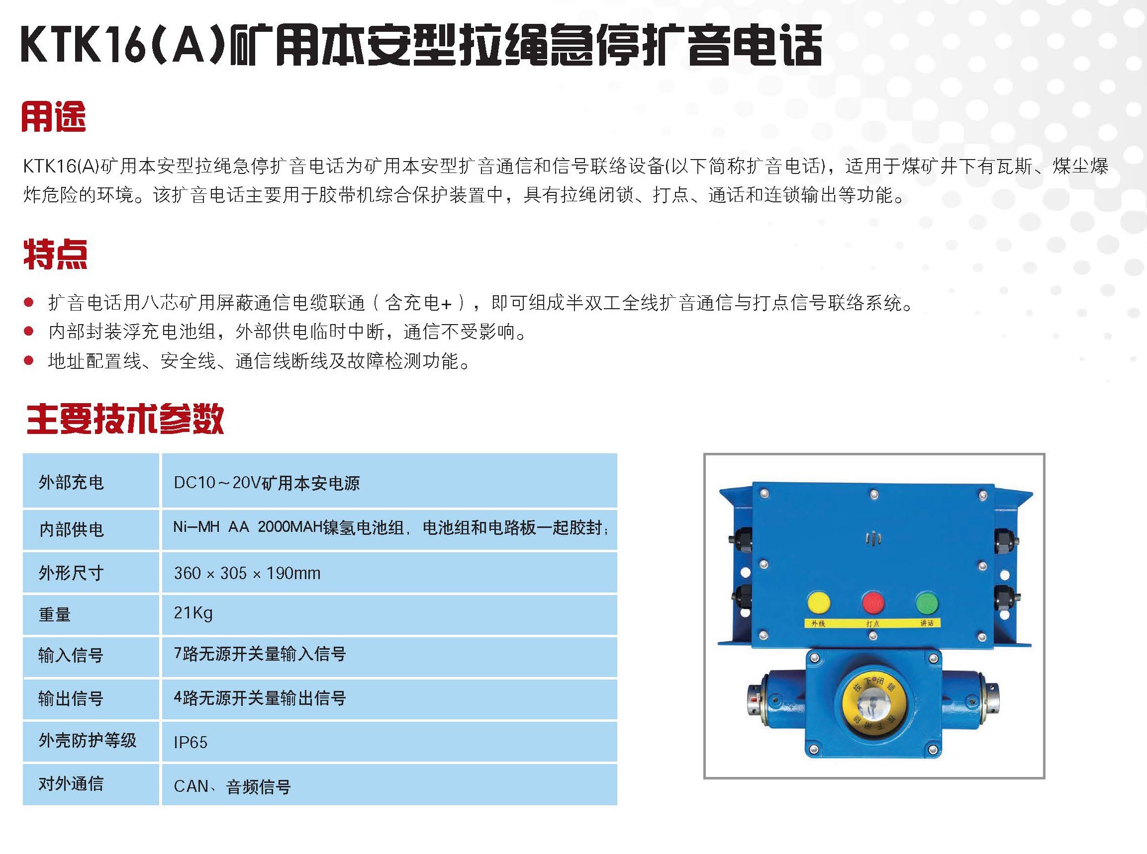 KTK16(A)矿用本安型拉绳急停扩音电话
