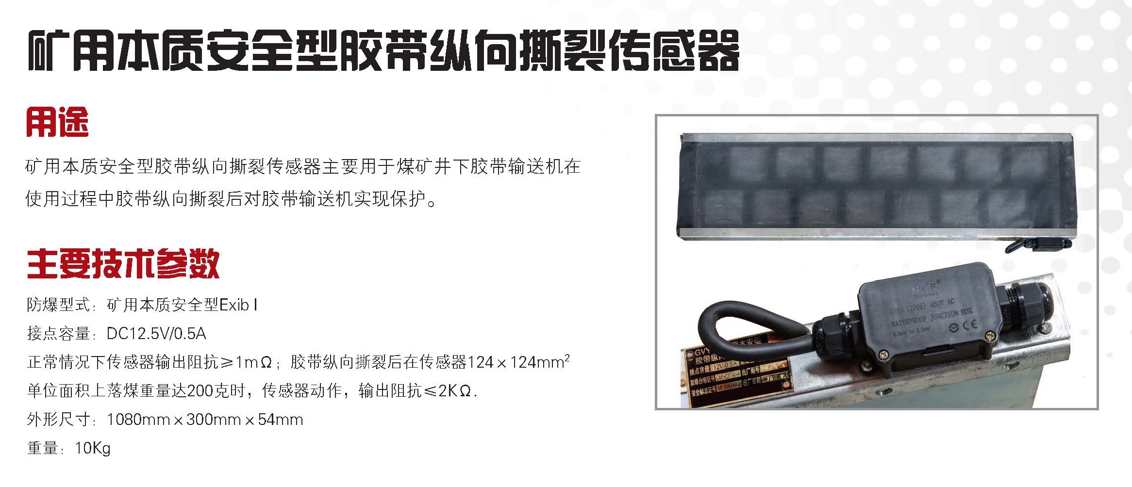 矿用本质安全型胶带纵向撕裂传感器