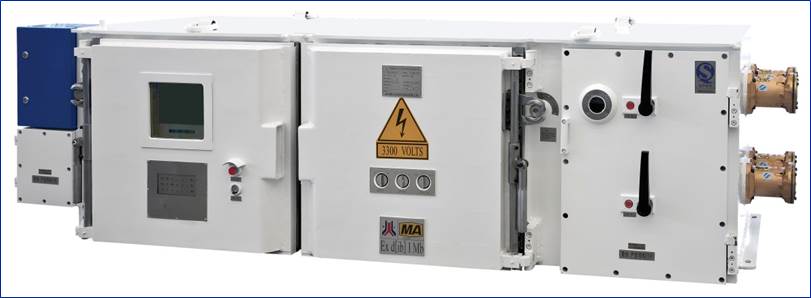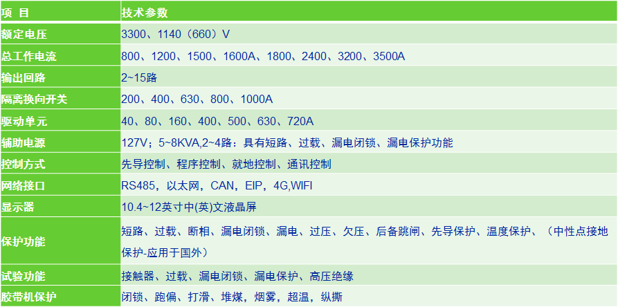 矿用隔爆兼本质安全型组合开关适用于含有甲烷混合气体、具有煤尘危险的煤矿井下,在额定电压交流50Hz,380V、660V、1140V、3300V供电线路中,可对综采、连采、掘进工作面的采煤机、刮板机、转载机、破碎机、乳化泵、喷雾泵、锚杆机等设备进行起停控制、顺序控制、双速切换控制,并能对电机及供电线路进行保护,可选配辅助电源,用于照明和其他控制系统供电。