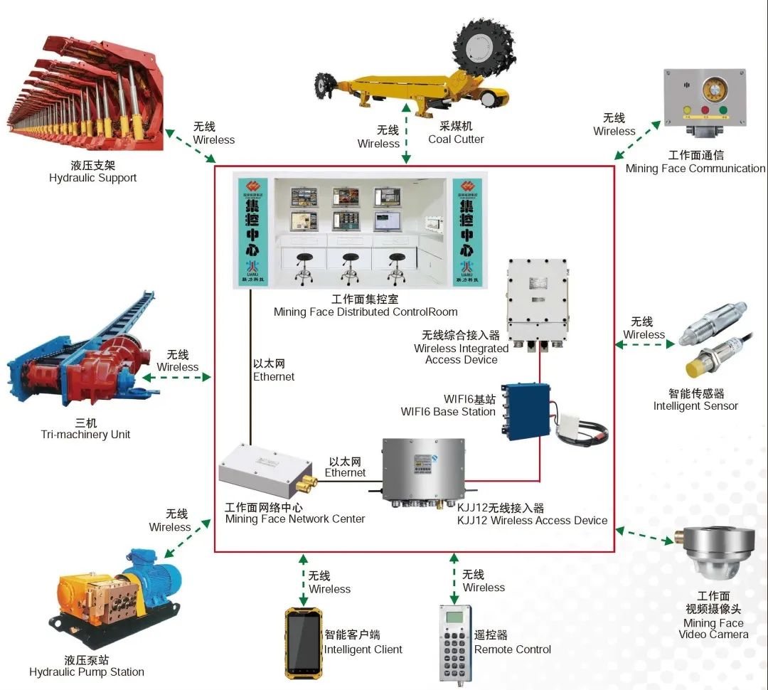 综采智能化系统成功地将物联网技术应用于工作面,替代了以往红外定位的方式,降低了成本,减少了岗位人员,大大减轻了日常维护工作量,进一步实现了智能化、少人化、无人化生产模式。