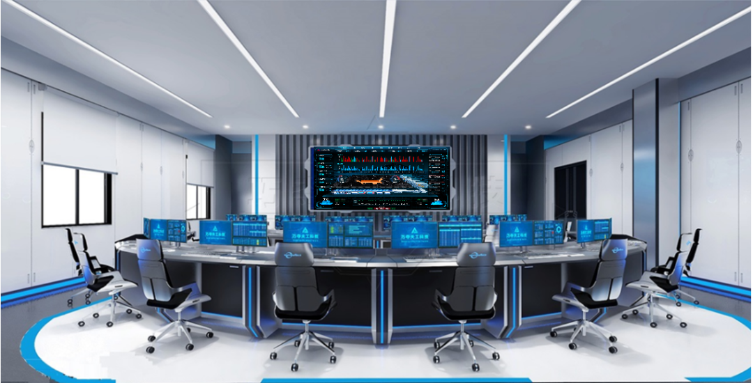“太空舱式”地面控制系统可用于综采工作面、连掘工作面等井下工作环境恶劣、危险性高的场所,能实现在地面对综采工作面和连采工作面所有设备的远程控制和监视。工作面所有设备(采煤机、液压支架、三机、泵站、开关、移变、馈电、照明、排水等)的控制、监视及参数修改等功能均可在地面完成,并实现了采掘、支护、运输、供电、供液一体化控制,井下数据全视图显示,视频跟机运行监视,异常现象智能分析预警提示等功能。该系统通过地面数据服务中心对井下数据的上传、存储、分析功能,通过大数据AI分析,对设备异常现象进行提前预警提升。使用“太空舱式”地面控制系统可实现模型展示、数据分析、实时视频、态势演示、指挥预演、资源部署等需求。通过远程控制、动态展示极大程度地提高了工作面的自动化水平,减少了井下工人的数量和降低了劳动强度以及事故发生率。
