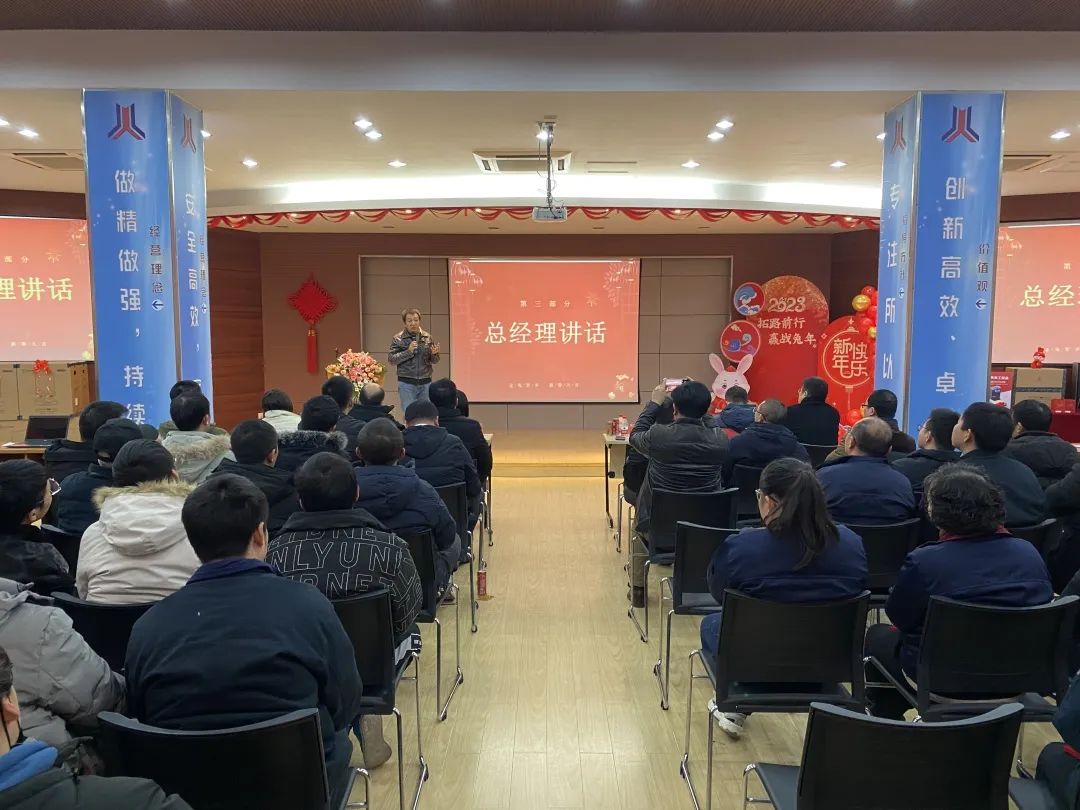回首2022,我们携手并进,展望2023,我们有更多的理想和追求,追逐梦想,我们从未停歇。愿我们2023一路腾飞,再战兔年。2023年2月3日上午9时整,以“拓路前行,赢战兔年”为主题的年度总结暨表彰大会在公司三楼大会议室正式开始。
